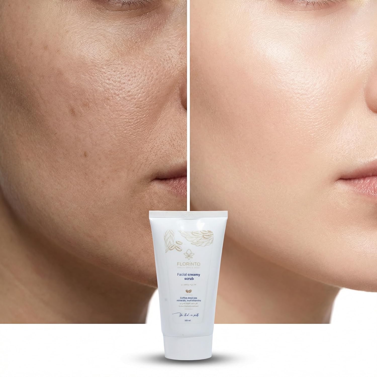 FLORÍNTO Coffee Facial Scrub – Gentle Exfoliating Face Scrub with Dead Sea Minerals, Apricot Kernel & Sweet Almond Oil – Removes Blackheads, Cleanses Pores & Revitalizes Skin – 120 g